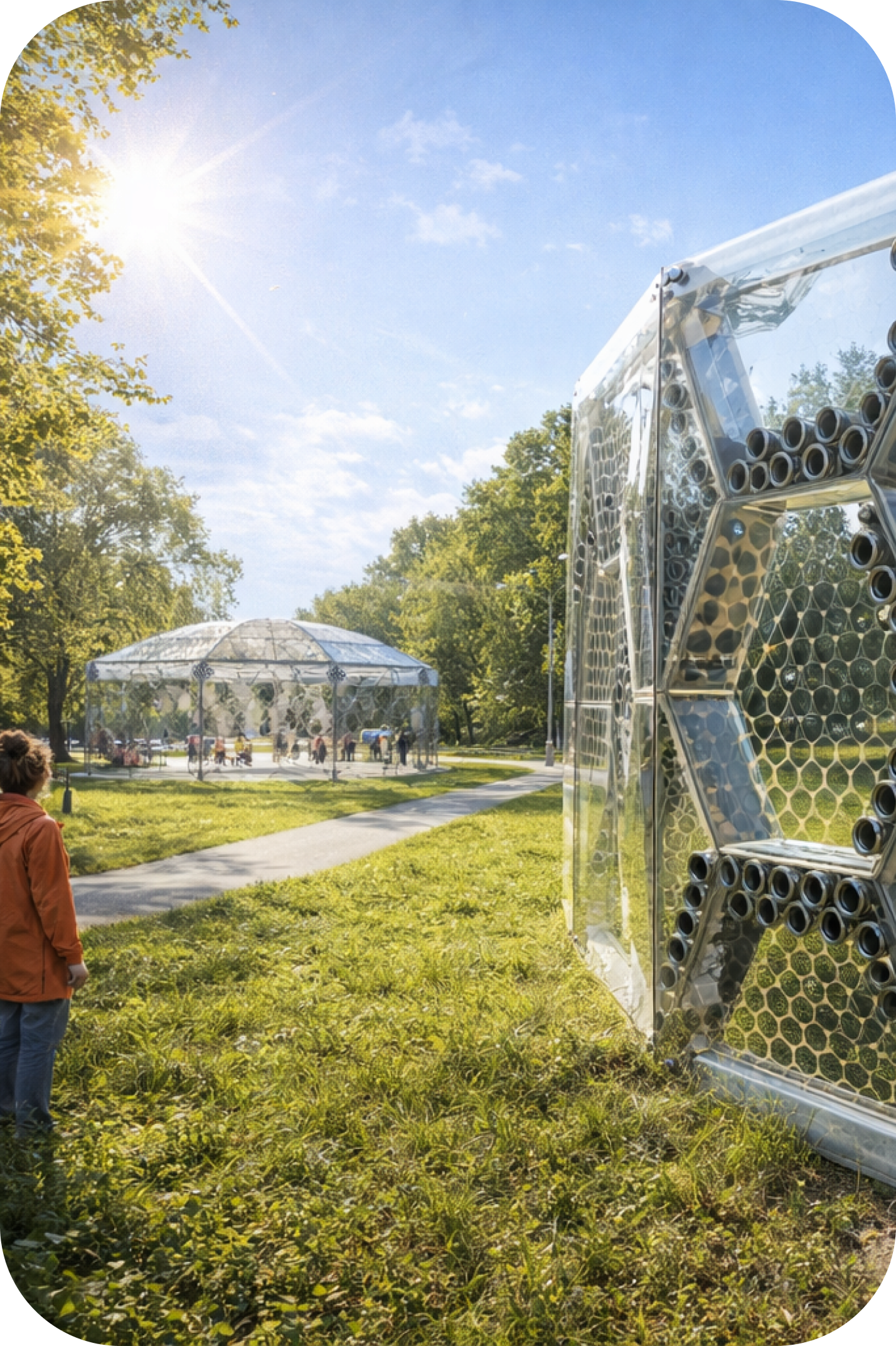 В рамках проекта планируется создание локальных городских зон, позволяющих людям кратковременно снизить воздействие городского шума и восстановить психоэмоциональный ресурс. Для визуального представления концепции мы использовали инструменты искусственного интеллекта, однако ключевое значение имеет функциональность: пространство должно эффективно изолировать внешний шум.